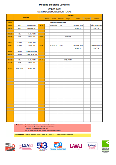 stade manuela montebrun 53000 LAVAL - de 18h30 à 22h