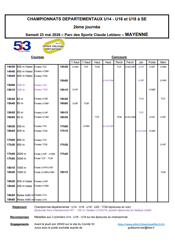 parc des sports 53100 MAYENNE - de 14h30 à 19h15