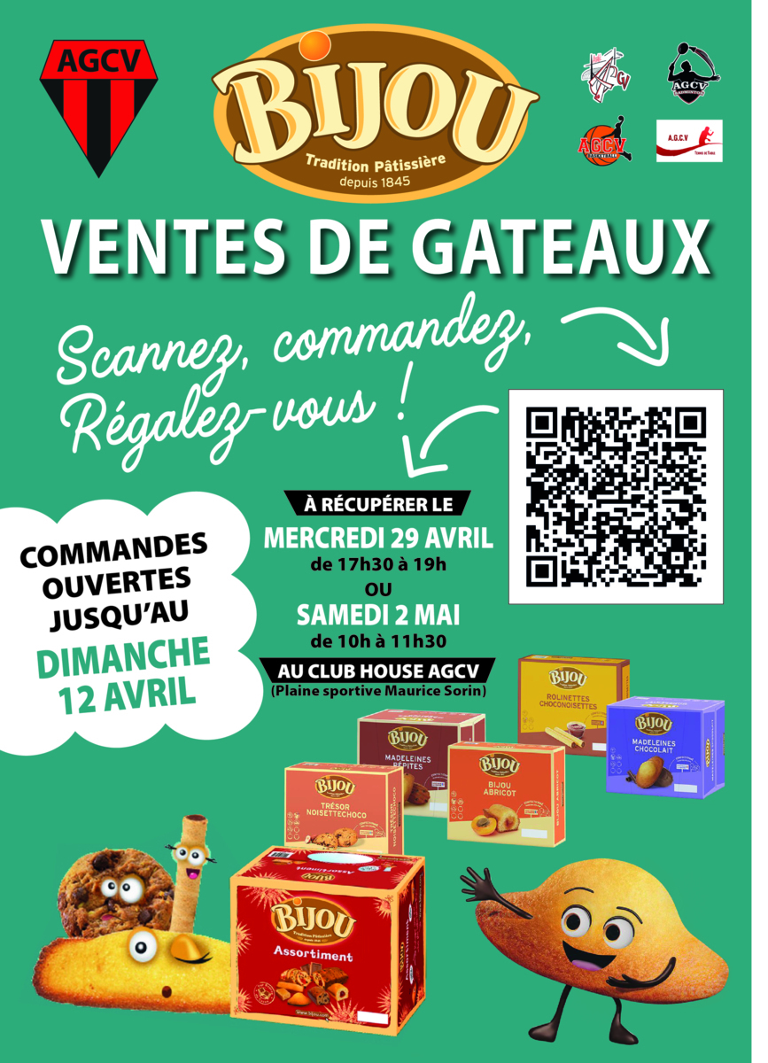 Pour Pâques, l'AGCV vous propose une commande de gâteaux BIJOU : commande via Helloasso